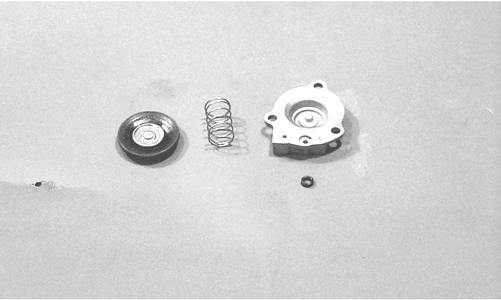 7.Place the U-ring into the pump housing. Position the spring and diaphragm assembly (lip toward the carburetor) onto the carburetor; then secure the assembly with the pump housing and three screws. Tighten securely.