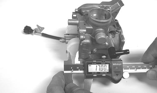 tor on its side w/float contacting the needle; then measure with a caliper the height when the float arm is in contact with the needle valve. Float arm height should be 17 mm.
