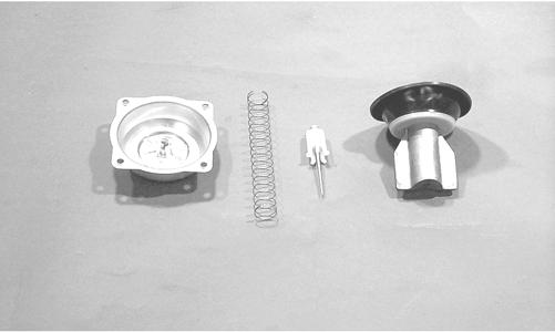 2.Remove the vacuum piston assembly from the carburetor body. Account for a spring, spring seat, and the jet needle.