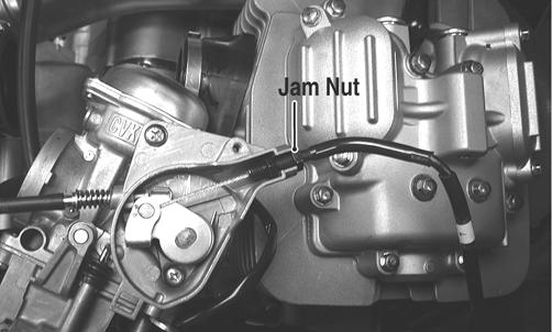 1.Slide the rubber boot away; then loosen the jam nut from the throttle cable adjuster.