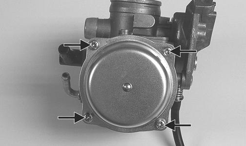 4.Remove the Phillips-head screws securing the float chamber; then remove the chamber. Account for the