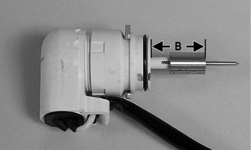 3.Connect Electric Choke Test Harness to the choke connector and a suitable 12 DC volt power supply for 2-3 minutes. Disconnect the power and measure plunger extension. Measurement (B) should be 22.1-23.4 mm.