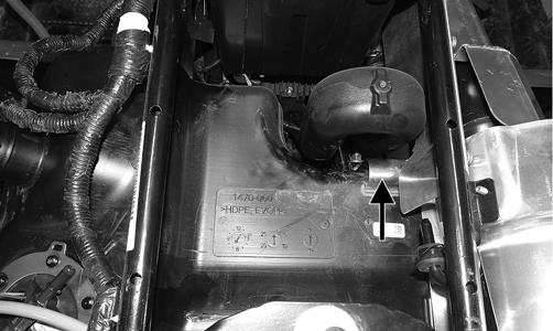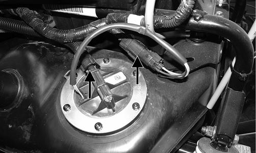 2.Inspect all hoses for cracks or leaks. 3.Inspect tank cap and tank for leaks, holes, and damaged threads. 4.Remove the fuel level sensor/fuel pick-up assembly and inspect the fuel level sensor and fuel screen. NOTE: If the fuel level sensor has failed or may be