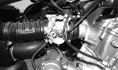 NOTE: The longer screw goes on top. 6.Connect the battery (positive cable first); then install the side panels and seat making sure it locks securely in place. NOTE: If the throttle body, ECM, TPS, or ISC are