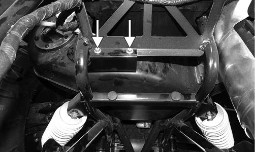 RADIATOR Removing 1.Drain the coolant at the engine. 2.Remove the front body panel/rack. 3.Remove the upper and lower coolant hoses. 4.Remove the cap screws and nuts securing the radiator to the frame.