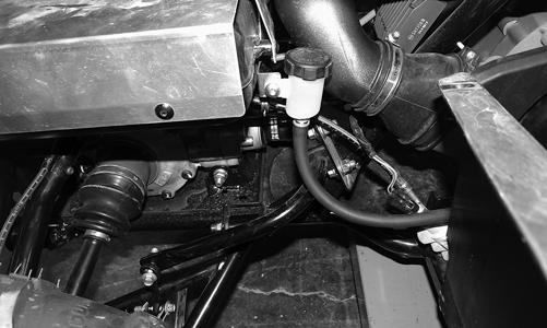 This hydraulic brake system is designed to use DOT 4 brake fluid only. If brake fluid must be added, care must be taken as brake fluid is very corrosive to painted surfaces.