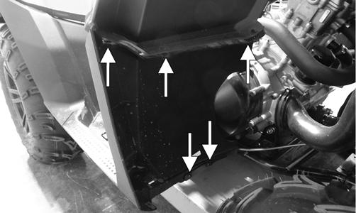 bly, compartment box, air filter/filter housing, and left-side/right-side splash panels must be removed for this procedure.