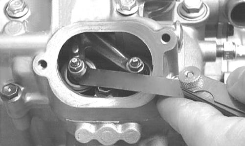 CHECKING Using a feeler gauge, check each valve/tappet clearance. If clearance is not within specifications, loosen the jam nut and rotate the tappet adjuster screw until the clearance is within specifications. Tighten each jam nut securely after completing the adjustment.