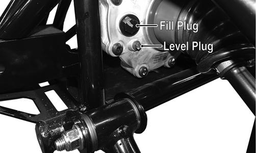 When changing the lubricant, use approved SAE 80W-90 hypoid gear lube. To check lubricant, remove the fill plug; the lubricant level should be 1 in. below the threads of the plug. If low, add SAE approved 80W-90 hypoid gear lubricant as necessary. To change the lubricant, use the following procedure. 1.Place the ATV on level ground. 2.Remove each oil filler plug. 3.Drain the oil into a drain pan by removing in turn the drain plug from each.