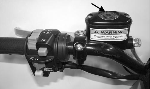 E.Repeat step D until the brake lever is firm. 4.To bleed the auxiliary brake system, use the following procedure. A.Remove the cover and fill the reservoir with DOT 4
