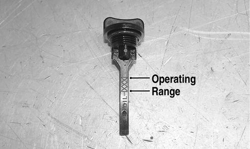 11.Remove the oil level stick; the oil level must be within the operating range but not exceeding the upper mark. CAUTION