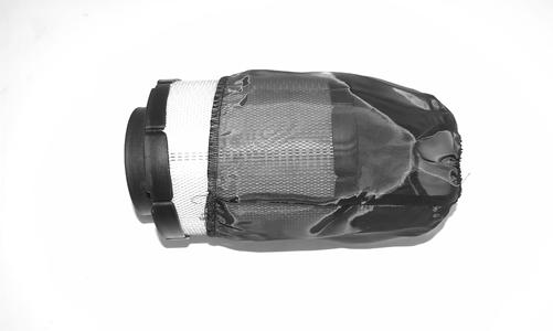 4.Using an air hose, clean the pre-filter. 5.Slide the pre-filter over the closed end of the new filter and install into the housing. Tighten the clamp securely. 6.Install the air filter housing cover and secure with the clips. 7.Install the seat.