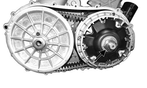 4.Install the cap screw from the tool kit into the driven pulley fixed face; then turn the cap screw clockwise to spread the pulley faces. Remove the V-belt.