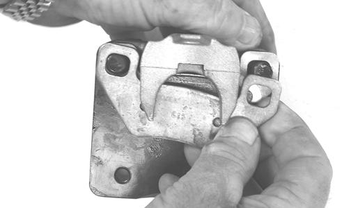 C.Install the new brake pads. D.Secure the caliper to the knuckle and/or axle housing with new “patch-lock” cap screws. Tighten to 20 ft-lb.