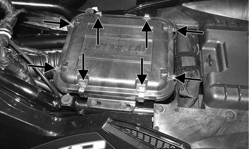bly, compartment box, air filter/filter housing, and left-side/right-side splash panels must be removed for this procedure.