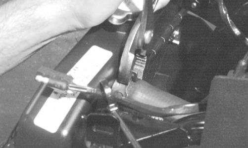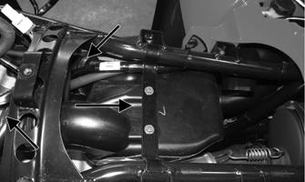 REMOVING 1.Remove the heat shields and seat. 2.Disconnect the negative battery cable; then remove the gas tank (see Gas Tank in this section).