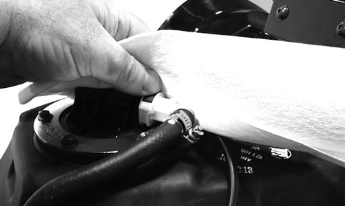 2.Connect the gasline hose connector to the fuel pump outlet making sure it locks securely in place; then connect the fuel pump/fuel gauge connector to the harness. 3.Remove the gas tank cap and place the gas tank cover over the gas tank. Install the gas tank cap; then secure the cover with four reinstallable rivets and two cap screws. 4.Install the side panels and secure with reinstallable rivets making sure the tabs on the panels engage the slots on the gas tank cover. 5.Connect the negative battery cable and install the battery case access cover; then install the seat.