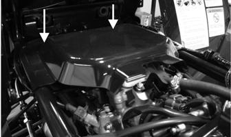 REMOVING 1.Remove the battery case access cover from the battery case; then disconnect the negative battery cable and remove the seat. 2.Remove the reinstallable rivets securing the side panels (two on each side) and remove the side panels.