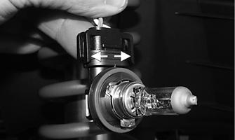 2.Remove the headlight bulb by rotating the bulb assembly and removing from the headlight housing; then spread the retaining clips and disconnect the bulb assembly from the connector.