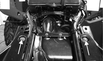 REMOVING Remove the four front cap screws securing the bumper support tubes to the frame. INSTALLING Install the cap screws in the support tubes to frame. Tighten the cap screws securely.