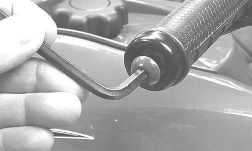 REMOVING 1.Loosen but do not remove the cap screw in the end of the handlebar; then tap lightly on the head to dislodge the handlebar plug.