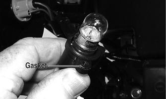 Rotate the ignition switch to the running lights position; the running lights and taillights should illuminate. Test the brakelights by compressing the brake lever. The brakelights should illuminate. Shift the Hi/Lo beam switch to the Lo position; the low beam headlights should illuminate. In the Hi position, the high beam headlights should illuminate. The running/tail lights will remain illuminated until the ignition switch is switched to the run position. HEADLIGHTS NOTE: The bulb portion of a headlight is fragile.