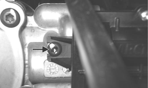 4.Loosen but do not remove the mounting cap screw at the front of the actuator; then slide the actuator to the rear enough to clear the slotted mounting tab and the selector shaft.
