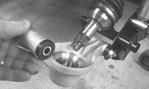2.Swing the knuckle up and onto the drive axle; then place the knuckle into place in the upper A-arm.