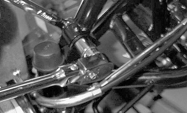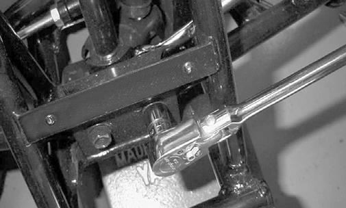 3.Remove the upper shock mounting nut and cap screw; then remove the shock absorber from the frame.