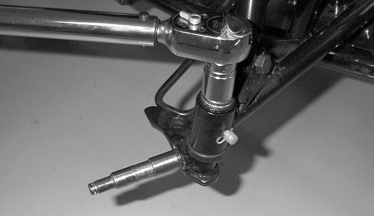 5.Remove the tie rod end from the steering knuckle. 6.Remove the rubber spindle pin boot; then remove the cotter pin and flanged castle nut from the spindle pin.