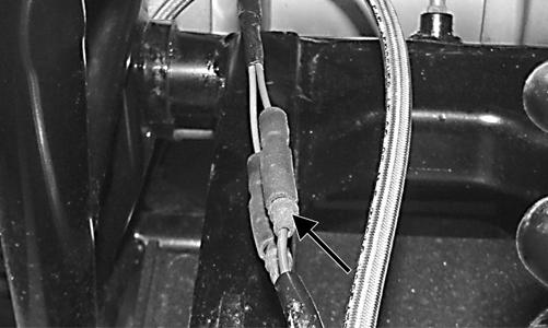 2.Remove the rear wheels; then remove the rear hub caps and hub nuts. Discard the cotter pins. 3.Remove the rear axle assembly; then remove the rear shock absorber. 4.Disconnect the speed sensor wire connectors; then remove the brake hose and speed sensor wires from the holder on the swing arm.