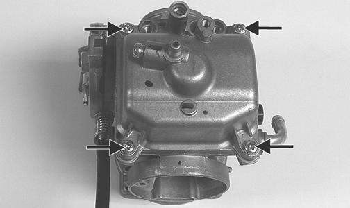 3.Remove the Phillips-head screws securing the float chamber; then remove the chamber. Account for the