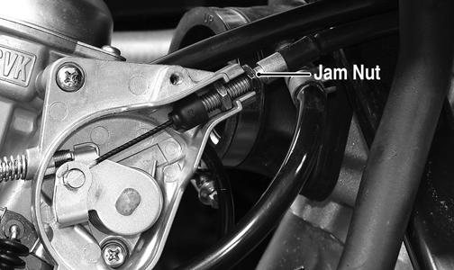 3.Tighten the jam nut against the throttle cable adjuster securely; then slide the rubber boot over the adjuster.