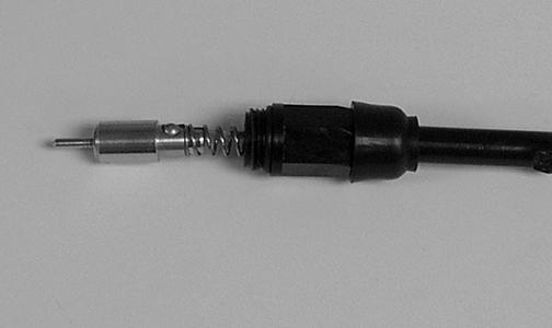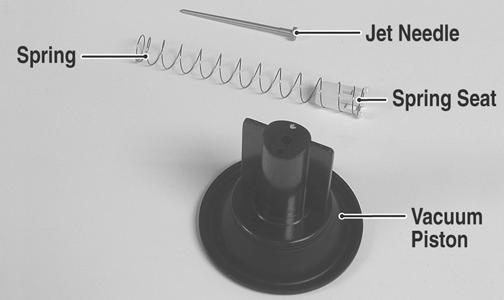 2.Remove the vacuum piston assembly from the carburetor body. Account for a spring, spring seat, and the jet needle.