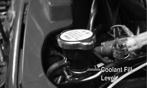 After operating the ATV for the initial 5-10 minutes, stop the engine, allow the engine to cool down, and check the coolant level. Add coolant as necessary.