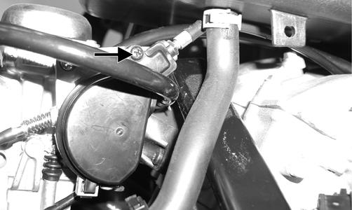 INSTALLING 1.Connect the vent hose onto the carburetor. 2.Place the throttle cable into position and secure by tightening the outer jam nut.