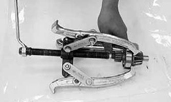 3.Remove the pinion shaft using the pinion puller; then using a three-jaw puller, remove the pinion bearing.