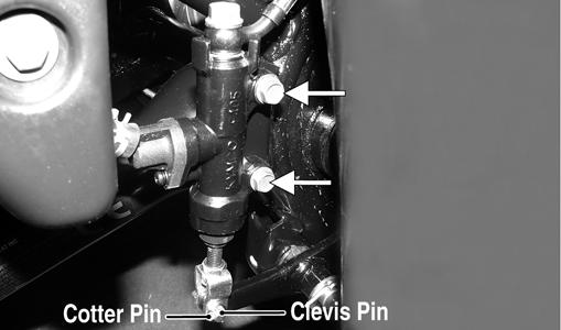 3.Remove the cotter pin from the clevis pin and remove the clevis pin; then remove the two cap screws securing the master cylinder to the frame and remove the master cylinder.