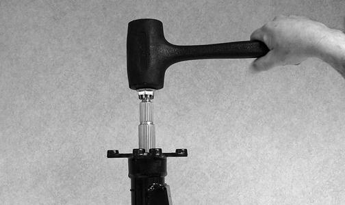14.Place the right end (shorter length) of the axle on a wood block; then using a rubber mallet, drive the gear case from the axle.