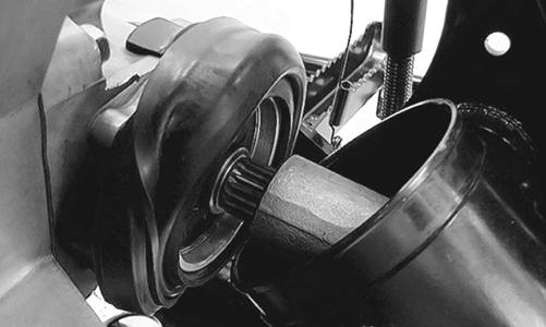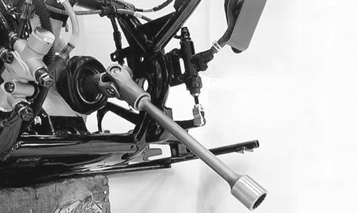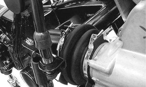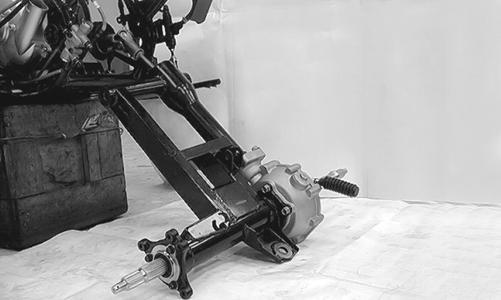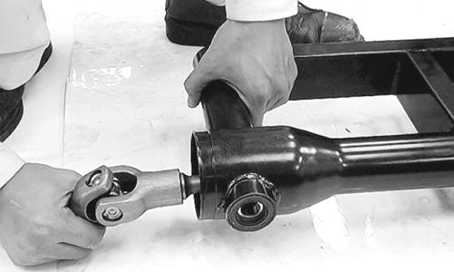 6.Align the swing arm assembly in the frame and engage the universal joint onto the splines of the secondary driven bevel gear shaft.