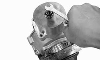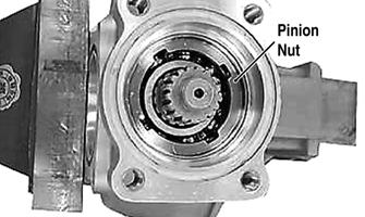 5.Drive the pinion assembly into the gear case seating the bearing firmly; then secure with a new lock nut and using the pinion lock nut wrench, tighten to 72 ft-lb.