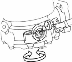 After tooth contact is corrected, gear backlash must be checked. Checking Backlash 1.Mount a dial indicator through the oil fill plug to contact a tooth on the ring gear; then “zero” the dial indicator.