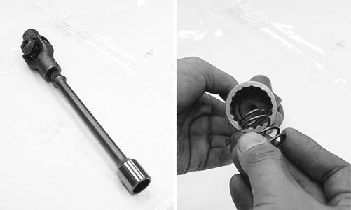 3.Apply grease to the universal joint splines and driveshaft splines; then install the driveshaft spring into the driveshaft.
