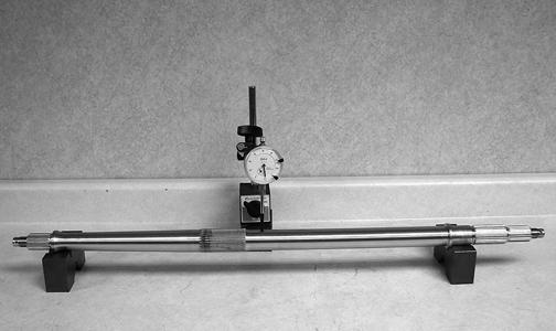 4.Check that all bearings turn freely and smoothly and are not worn, discolored, or missing dust seals. 5.Inspect brake components for leaks, excessive wear, or discoloration. 6.Check the axle shaft for runout using a dial indicator and suitable supports. Maximum runout is 3 mm (0.12 in.). NOTE: Axle runout is equal to 1/2 the total dial