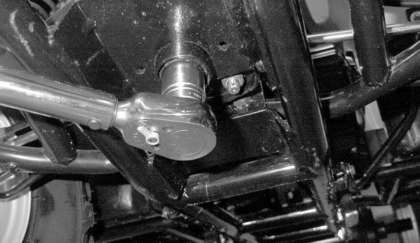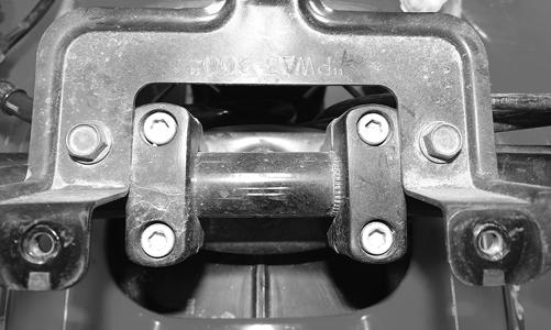 2.Inspect the tie rods for damaged threads or wear. 3.Inspect the tie rods for cracks or unusual bends. 4.Inspect all welded areas for cracks or deterioration. 5.Inspect the steering post and brackets for cracks, bends, or wear. 6.Inspect the plastic bearing halves and bearing caps for cracks or wear. 7.Inspect the handlebar tube for cracks, wear, or unusual bends. INSTALLING 1.Place the steering post into position. Tighten the two cap screws on the front support bracket making sure the two-piece plastic bearing and the inner and outer bearing caps are in place. Tighten the cap screws to 20 ft-lb.