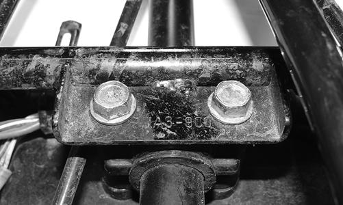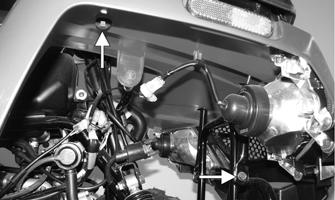 14.Remove the cap screws securing the main body panel to the frame. Two cap screws are located under the front fenders, and the other two cap screws are located below the rear fenders.