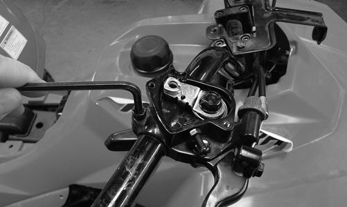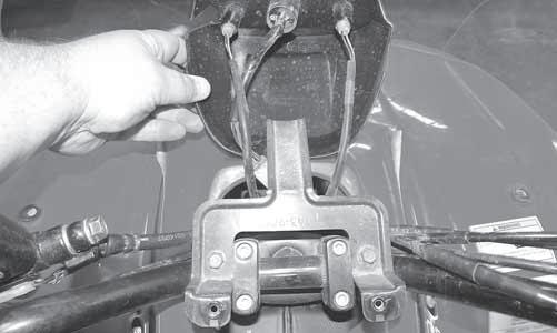 REMOVING 1.Remove the seat. 2.Remove the control cables from the handlebar; then route them through the metal loop on the steering post and out of the way.