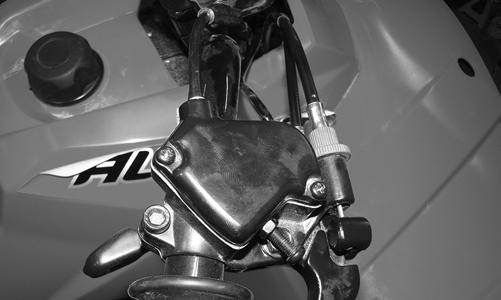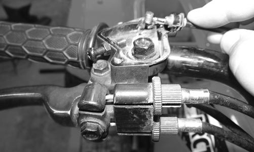 7.Remove the cap screws securing the left hand brake lever assembly to the handlebar and remove the hand brake/master cylinder assembly.