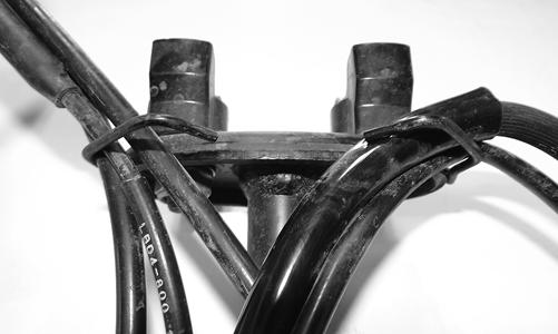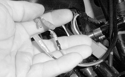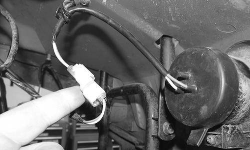 4.Disconnect the handlebar switch assembly and brake switch connectors; then route them through the metal loop on the steering post and out of the way.