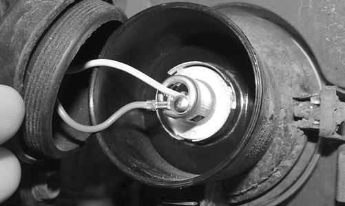 3.Place the new bulb into position; then with O-ring installed onto the socket, secure by turning the socket clockwise. 4.Install the rubber boot cover.